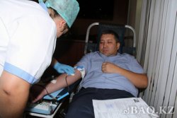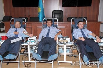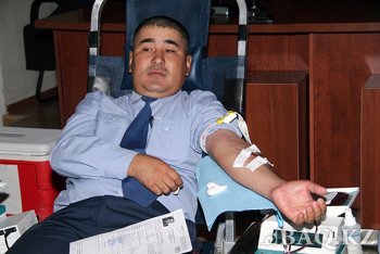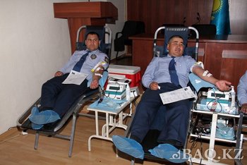 "Осындай шараны жылына 2-3 рет өткізіп отырамыз. Бүгінгі шара кезінде шамамен 300-400 литр көлемінде қан тапсырылады. Донор ең алдымен тіркеуден өтіп, анкета толтырып, резус-факторын және қан қысымын анықтап алғаннан кейін қан тапсырады" дейді Әкімшілік полиция басқармасының бөлім бастығы Азамат Садықов.