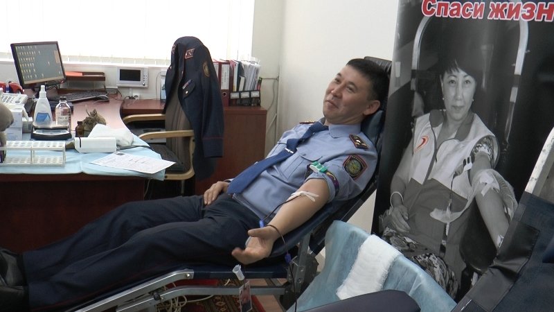 Алматылық полицейлер жол апатынан жапа шеккендерге көмек ретінде қан тапсырды (ФОТО)