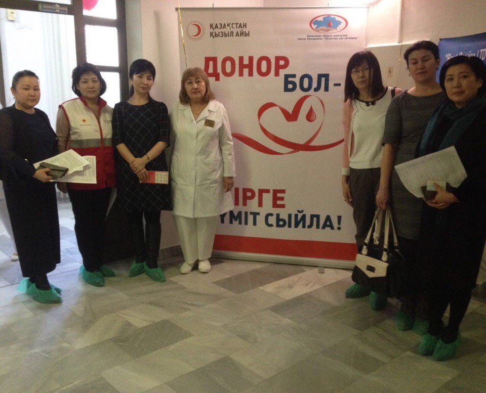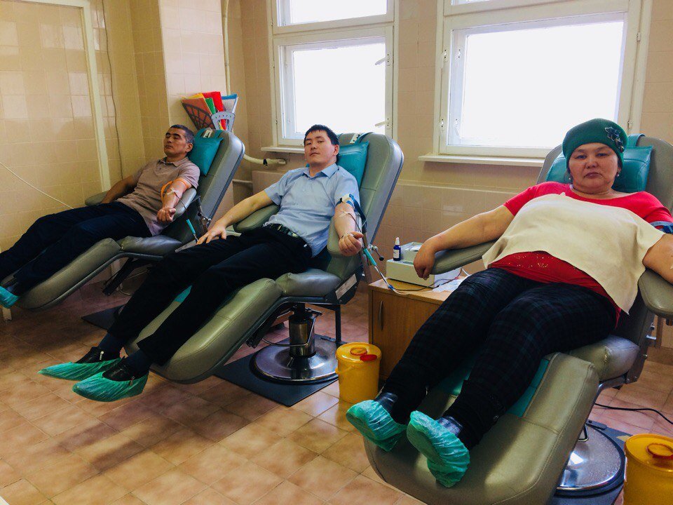 Акцияға қатысушылар өз еріктерімен донор ретінде қан тапсырып, мұқтаж жандарға көмектесуді мақсат еткен.