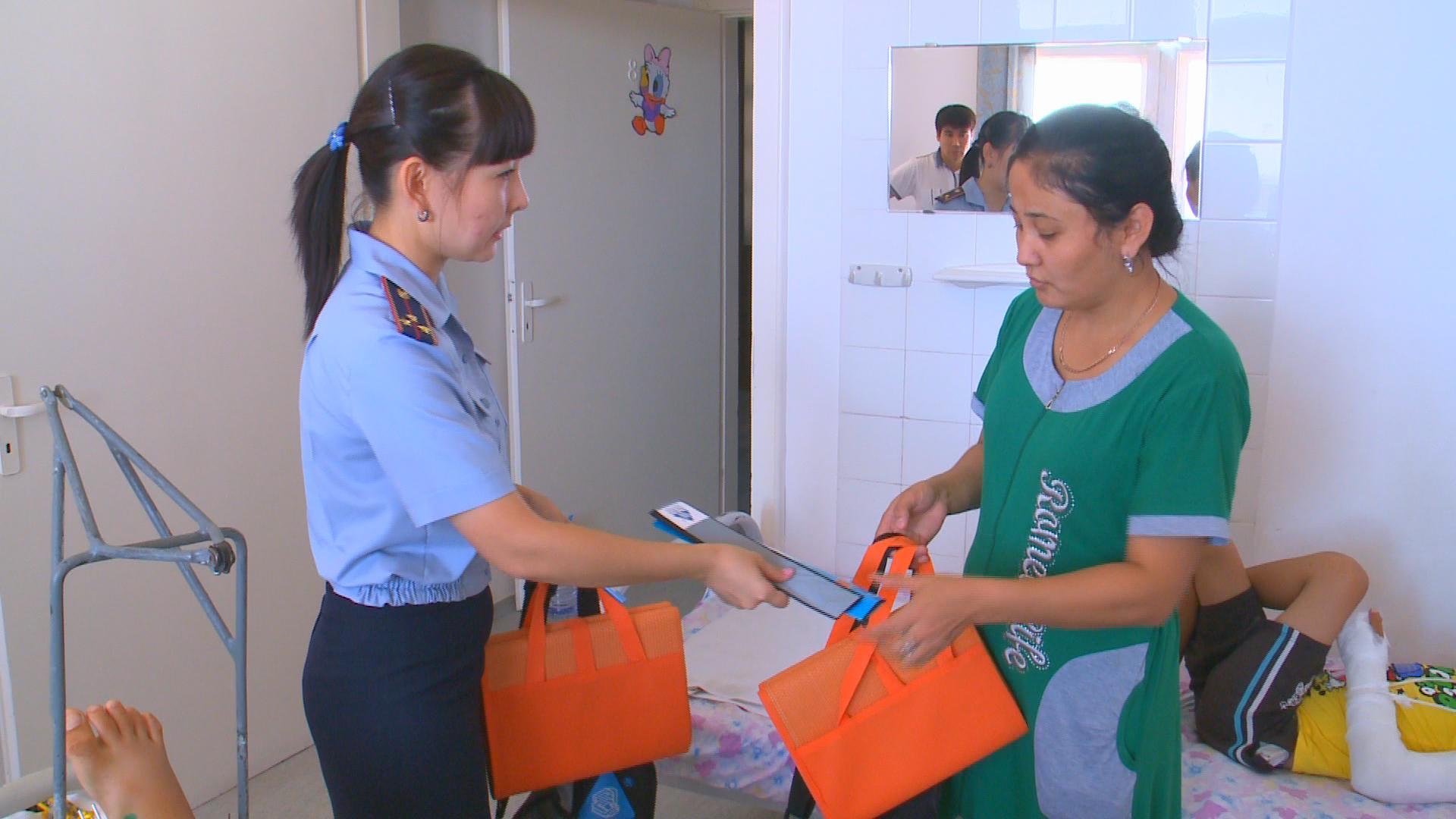 Қайырымдылық акциясының жалғасы ретінде полиция қызметкерлері жол көлік оқиғасынан зардап шеккен балаларға жаңа оқу жылы қарсаңында түрлі сыйлықтар тарту етті. Яғни, облыстық медицина орталығының балалар хирургиясында жол көлік оқиғасы салдарынан түрлі дене жарақаттарын алып жатқан балаларға қол сөмкесін, мектепке қажетті құрал-жабдықтар және түнгі мезгілде жарық шағылыстыратын сөмкеге арналған қап сыйлады. Бұл акцияның мақсаты – физиологиялық, психологиялық тұрғыдан зардап шеккен балаларды көзден таса қылмай, олардың көңіліне үміт отын сейілту болып табылады дейді шараны ұйымдастырушылар.